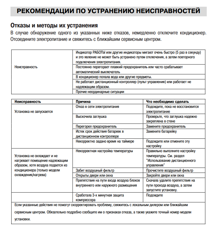 Parfois, lorsque le climatiseur fonctionne, une erreur système peut se produire, auquel cas elle sera affichée à l'écran sous la forme d'un ensemble de lettres et de chiffres. Lorsque vous contactez le support technique ou la réparation, il est préférable de leur fournir le code d'erreur qui s'est produit. Vous pouvez également essayer de résoudre le problème vous-même. Pour ce faire, nous donnerons ci-dessous le décodage des codes d'erreur les plus courants.