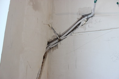 - pose de communications interblocs dans une gouttière dans le mur;