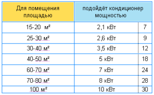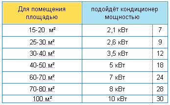 Les climatiseurs pour 5000 BTU / h (1,6 kW) sont conçus pour une pièce de 15 à 16 m². Des systèmes plus efficaces de 7000 BTU / Hr (2,1 kW) conviennent à une pièce de 21 à 22 pi². m C'est une option populaire parmi les acheteurs, les appareils correspondent à la surface moyenne du salon ou du hall.