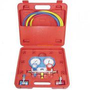 Ils sont disponibles pour différents types de réfrigérants. La station se compose de deux manomètres : bleu et rouge, ils sont reliés au collecteur et par des tuyaux à la ligne de fréon.