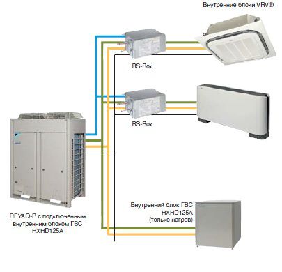Il convient de rappeler que le fonctionnement de toutes les unités dans différents modes (refroidissement et chauffage) n'est possible qu'avec un système de connexion à trois tuyaux. Un système de climatisation VRF à deux tubes est capable de fournir différents paramètres d'air définis, mais uniquement dans un mode.