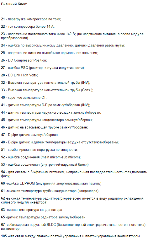 Un appareil de diagnostic via un code d'erreur indique un dysfonctionnement, ce qui réduit considérablement le coût des réparations, car il n'est pas nécessaire d'attirer des appareils coûteux et des professionnels du centre de service pour identifier et éliminer un défaut. Pour éliminer l'erreur détectée des climatiseurs lji, les connaissances et l'expérience d'un large éventail de spécialistes sont suffisantes.