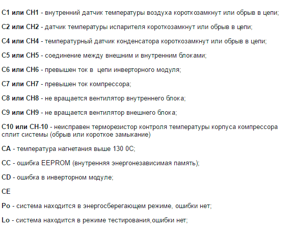 Les systèmes modernes de l'entreprise Lg, régulant le régime de température dans les locaux, sont structurellement assez complexes, l'erreur du climatiseur lg peut entraîner des dysfonctionnements, dont l'élimination sera assez coûteuse. Par conséquent, tous les climatiseurs sont équipés d'un dispositif d'autodiagnostic qui, en cas d'interruption, peut bloquer le fonctionnement du climatiseur et afficher la cause du dysfonctionnement sur l'unité intérieure.