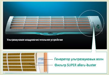 - l'unité intérieure de certains modèles (selon le marquage) est équipée d'un système de nettoyage E-Ion. Ses capteurs surveillent l'état de l'air et, en cas de contamination, le générateur d'ions chargés est allumé, tuant les moisissures et les spores fongiques. Lorsque le capteur indique une qualité d'air acceptable, le système E-Ion s'arrête et une minuterie signale le problème. Il est facile de comprendre qu'une alerte peut indiquer à la fois que le capteur ou le générateur doit être réparé, et qu'il est juste temps de nettoyer les filtres ;