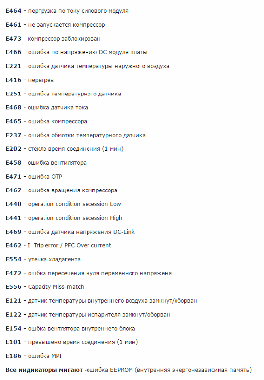 La liste complète des erreurs dans les climatiseurs Samsung est la suivante.
