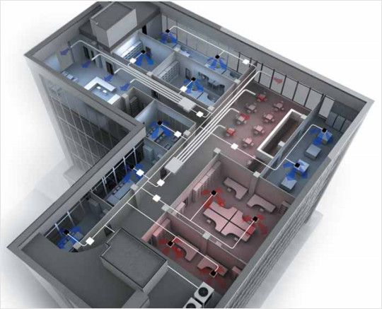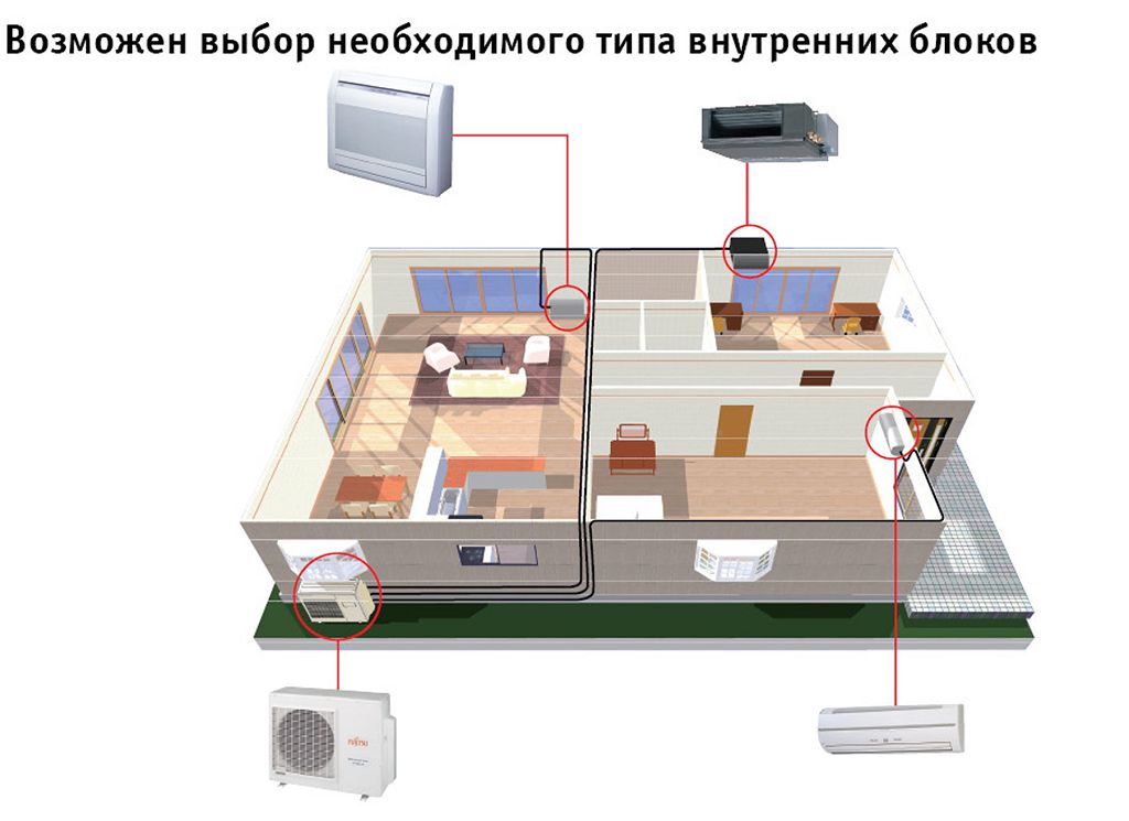 La puissance totale peut aller jusqu'à 120 kW et traiter plus de 1500 m² de locaux. Dans tous les systèmes, le principal avantage est la longueur des autoroutes avec la taille d'une branche jusqu'à 150 m² et la différence de hauteur entre les blocs extérieurs et intérieurs jusqu'à plusieurs dizaines de mètres. Cela leur permet d'être assez éloignés les uns des autres.