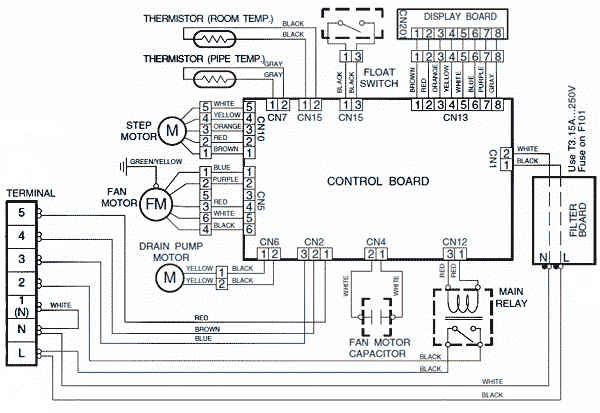 Si, pour une raison quelconque, il n'est pas possible de trouver le schéma de câblage de l'unité intérieure des climatiseurs FUJITSU (cela s'applique également aux climatiseurs extérieurs), vous devez alors contacter le fabricant ou le distributeur.