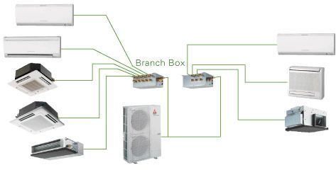 Pour le traitement des masses d'air dans des pièces moyennes et grandes d'une superficie allant jusqu'à plusieurs milliers de mètres, des installations multizones sont utilisées, qui, en termes d'assemblage, ressemblent à un designer pour enfants. Un climatiseur extérieur d'un tel système industriel MITSUBISHI ELECTRIC peut connecter des dizaines de climatiseurs intérieurs. Dans ce cas, il peut également y avoir plusieurs modules externes.