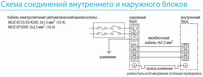 De nombreux problèmes sont associés à une installation de mauvaise qualité du système, ignorant le circuit électrique de connexion du climatiseur MITSUBISHI, dépassant la charge sur le réseau. Le respect de toutes les règles d'installation prolonge la durée de vie de l'appareil et exclut la possibilité d'incendies.