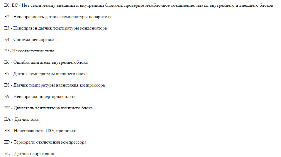 Les raisons les plus courantes de l'apparition d'un certain code d'erreur sont une installation incorrecte du climatiseur ou un entretien incorrect.