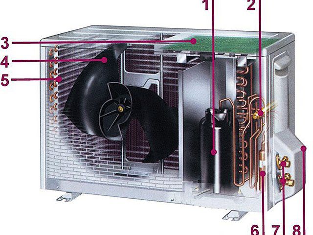 L'unité de travail principale d'un climatiseur mural domestique est située dans une unité externe, dont la composition est clairement visible sur l'image suivante :