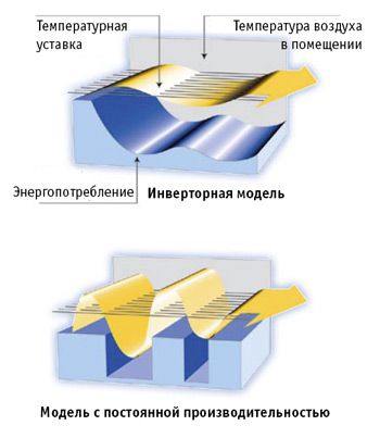 Souvent l'acheteur se pose la question de savoir quel climatiseur choisir : marche/arrêt (start-stop) ou inverseur. Si les plans prévoient un fonctionnement fréquent du système et non seulement en automne, mais aussi en hiver, alors ce dernier est préférable. Les onduleurs ont une plage de température de fonctionnement plus large et le contrôle en douceur du compresseur permet à l'appareil de fonctionner de manière plus silencieuse et plus économique. Le modèle start/stop est cependant moins cher à réparer, car il possède une électronique moins complexe.
