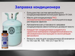 - Le réfrigérant ne doit pas être mélangé avec des huiles synthétiques et minérales conventionnelles. Le fréon R134A ne s'y dissout pas. L'huile n'est pas transportée le long du circuit de refroidissement, se dépose dans les échangeurs de chaleur et empêche le transfert de chaleur. Des huiles de polyalkylène glycol ont été spécialement développées pour le nouveau réfrigérant. Ils ont une hygroscopicité élevée et une faible conductivité diélectrique.