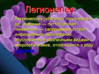 La pneumonie du climatiseur se manifeste par de la fièvre, des frissons, des douleurs musculaires et thoraciques et des expectorations. Bientôt, des nausées et des diarrhées s'ajoutent aux symptômes. Les patients sont hospitalisés et traités avec des antibiotiques. Le pic des infections se produit en été, lorsque les systèmes climatiques travaillent massivement pour le refroidissement. La condensation s'accumule dans le système qui, lorsqu'il est chauffé, devient un terrain fertile pour les bactéries.