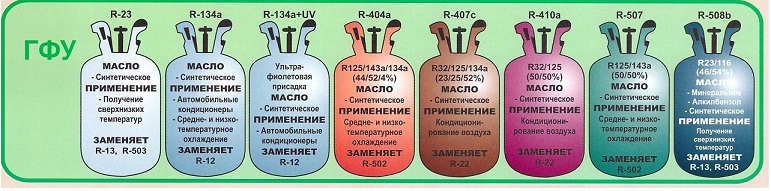 Plusieurs marques de fréon sont utilisées dans les climatiseurs : r22, R410a, R407c. Le type de réfrigérant utilisé est indiqué sur les documents de l'unité et sur la plaque signalétique au dos des unités. Le fréon r22 est le plus répandu, mais dans les systèmes climatiques modernes, il a été remplacé par des fréons sans chlore. Les réfrigérants R407 et R22 sont similaires dans leurs propriétés. Le même équipement peut être utilisé pour charger le système. Le fréon R410a se caractérise par une pression élevée dans le circuit de travail (26 atmosphères, contre 16 pour le r22). Des adaptateurs et des tuyaux spéciaux sont nécessaires.