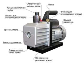 Passer l'aspirateur dans le circuit de travail du climatiseur vous permet d'éliminer l'air et l'humidité qui ont pénétré dans le système. Les gouttelettes de liquide restant à l'intérieur de l'équipement provoquent une usure rapide du compresseur. Pour travailler avec les systèmes climatiques et de réfrigération, une pompe à vide à un et deux étages est utilisée.