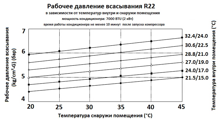 Dans une telle situation, il est nécessaire de ravitailler le système de refroidissement avec du fréon R22. La procédure nécessite une pompe à vide, un manomètre, une balance électronique, des tubes de communication. L'équipement doit être conçu pour fonctionner avec la marque HFC22.