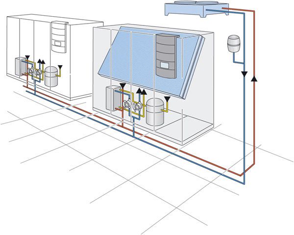 Vous pouvez voir le schéma de fonctionnement d'un climatiseur de précision avec un condenseur à air à distance sur cette photo.
