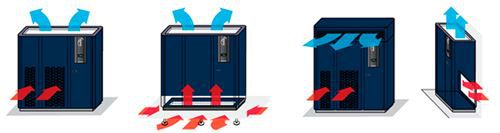 L'aspiration et le refoulement de l'air des climatiseurs de précision peuvent également s'effectuer selon différents schémas :