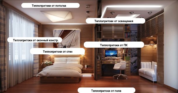 Mais en parlant de la sélection de la puissance du climatiseur, les experts entendent précisément sa capacité de refroidissement, dont les valeurs correspondent à la quantité totale de chaleur de toutes les sources de chaleur de la pièce.