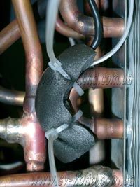 Le ralentisseur de ventilateur a un capteur de température. Il est installé sur le rouleau du condenseur, situé au milieu d'1/3 de la partie supérieure de l'échangeur de chaleur dans le sens du mouvement du fréon. C'est là qu'a lieu leur contact optimal, assurant une détermination précise de la température de condensation. Le variateur lui-même est installé et alimenté, en se concentrant sur le schéma de connexion du kit basse température au climatiseur, alors qu'il est préférable de fixer ses fils avec des pinces en plastique - cela réduira la charge sur les bornes.