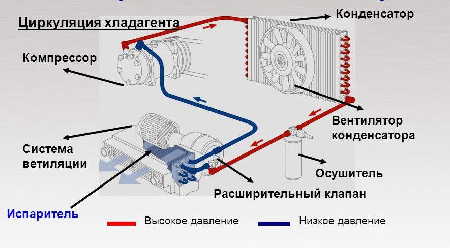 - La pression dans l'évaporateur est augmentée, car le fréon ne peut pas y pénétrer complètement et la moitié de la substance se trouve dans le condenseur.
