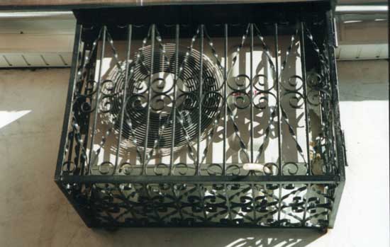 Le couvercle extérieur du climatiseur sert également de fonction décorative. Dans ce cas, ils essaient de le réaliser dans une certaine technique : forgé, peint en bronze ou avec l'effet de l'antiquité. Les options de finition sont différentes en fonction du style du bâtiment et de l'emplacement de l'appareil.