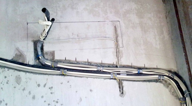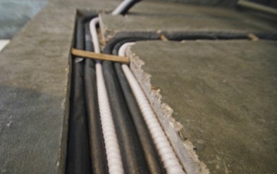 - les électriciens conduisent un câble électrique dans le mur à un panneau séparé;