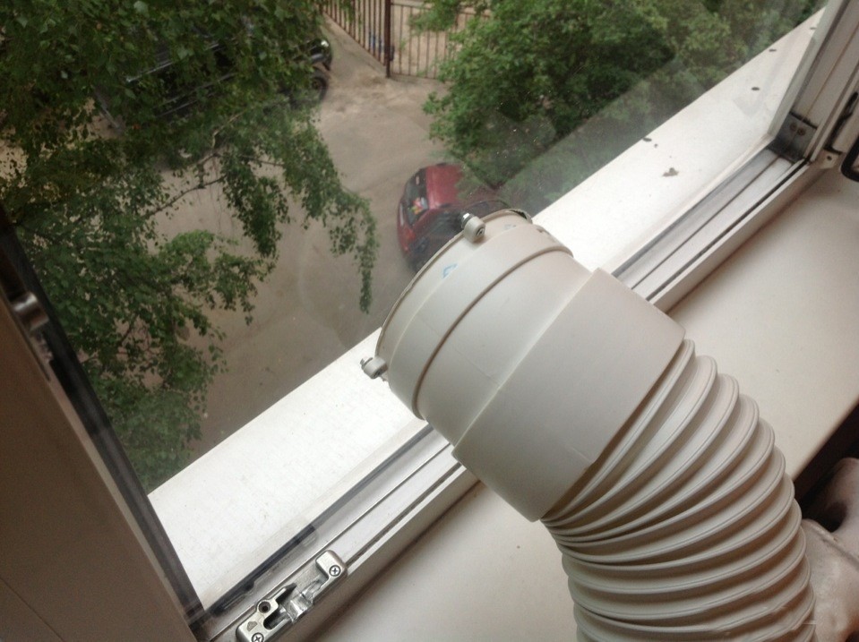 - sortie par une fenêtre légèrement ouverte ou une fenêtre ouverte, mais dans ce cas, le refroidissement ne sera pas efficace, car l'air chaud pénétrera à travers l'espace.