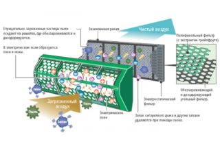 - Enrobage catéchol, également fabriqué à partir de composants végétaux. Les filtres sont développés par Panasonic. La catéchine est un antiseptique libéré par le feuillage de certaines plantes. Il détruit la plupart des virus et microbes connus. Six heures suffisent pour neutraliser complètement tout type de virus à l'intérieur.