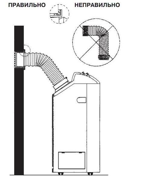 Un monobloc avec conduit d'air est une technique assez importante qui nécessite un certain espace dans la pièce, et suppose une option au sol. Le conduit d'air est un tuyau ondulé qui évacue l'air chaud de la structure et de la pièce vers la rue. Il est généralement retiré par une porte légèrement ouverte, une fenêtre de balcon ou par un trou dans une vitre d'une pièce. Moins souvent, il est monté directement dans un puits de ventilation, un trou dans un mur en béton ou en plexiglas (un bouchon est alors nécessaire).