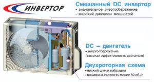 Le climatiseur augmente ou diminue la fréquence de l'alimentation électrique. Avec une diminution de la tension, le nombre de tours du moteur du compresseur diminue, respectivement, les performances de ce dernier diminuent. Le moteur électrique réagit aux lectures et au signal du capteur de température. Dans ce cas, la plage de réponse est considérablement réduite - de 1 à 1,5C.
