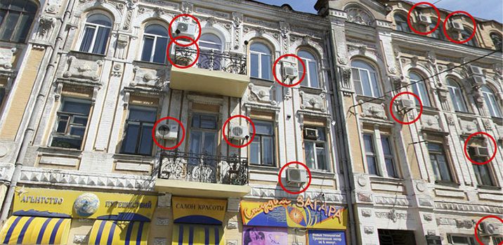 Depuis quelque temps, en passant par n'importe quel établissement de type urbain, on s'étonne de l'aspect dégoûtant des façades des immeubles d'habitation. Une énorme accumulation d'unités extérieures de climatiseurs installées au hasard est tout simplement choquante et déprimante.