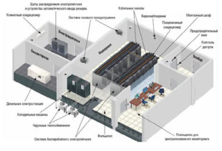La salle des serveurs est une salle réservée aux équipements de télécommunications. La salle est équipée d'une alimentation de secours, de capteurs de température et d'humidité. La chambre n'a pas de fenêtres. L'équipement d'exploitation génère une énorme quantité de chaleur, le système de climatisation est responsable de son élimination. Il doit fournir un environnement favorable pour les serveurs. Les températures élevées et la poussière dans l'air peuvent endommager les équipements sensibles. C'est la tâche du dispositif climatique d'amener les indicateurs aux normatifs.