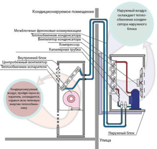 - Air conditionné dans toute la pièce. L'inconvénient de cette méthode est la répartition inégale de l'air froid. En raison du faible rendement, la consommation d'électricité augmente.