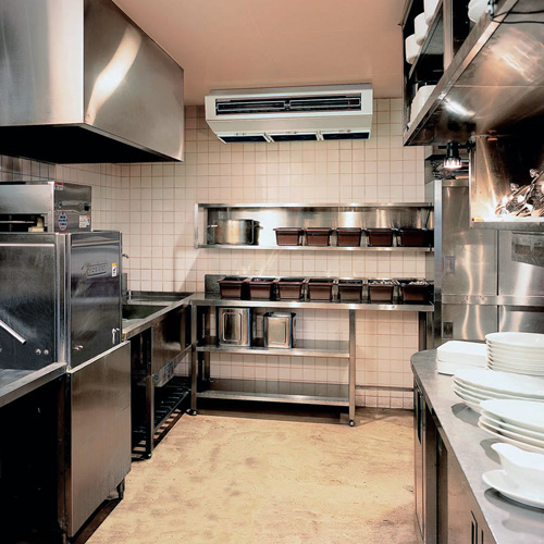 Les cuisines des restaurants et des cafés fonctionnent en permanence avec des fours industriels. La création de conditions de travail confortables pour le personnel est la tâche principale de la direction. Pour les restaurants, des appareils plus puissants sont sélectionnés - par exemple, des ventilo-convecteurs intégrés au système de ventilation pour fournir de l'air frais et climatiser la pièce.