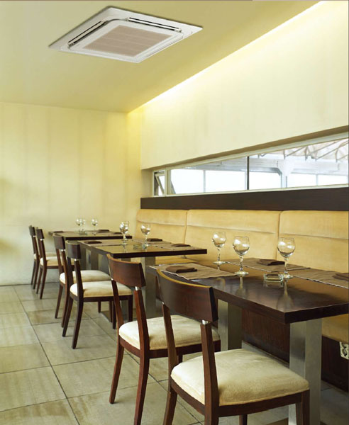 - Disposition des tables dans la salle. L'organisation de la climatisation pour un café, un pub et un restaurant dépend du plan de salle. L'air frais ne doit pas être dirigé directement vers les visiteurs. Une installation dissimulée est recommandée.