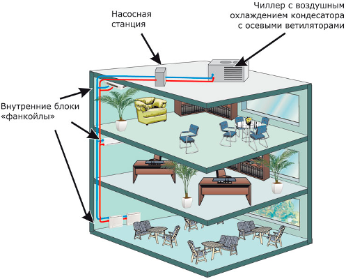 - la distance entre le refroidisseur et les ventilo-convecteurs n'est pas limitée ;