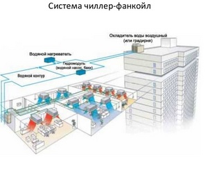 Le système refroidisseur-ventilo-convecteur est un complexe d'équipements climatiques multizones conçu pour créer un microclimat optimal à l'intérieur des bâtiments avec n'importe quel nombre d'étages et n'importe quelle zone. Le système est conçu pour un fonctionnement continu : en été, il assure un refroidissement efficace, en hiver, il réchauffe l'air. Éléments principaux : dispositif d'échange de chaleur et refroidisseur.