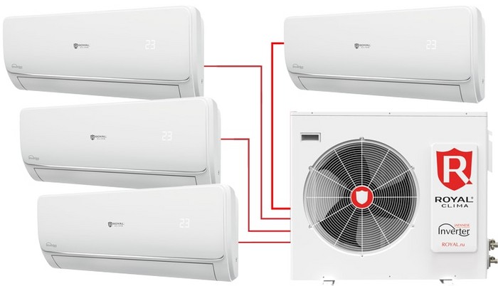 Souvent, les appartements multi-pièces et les maisons privées sont équipés de systèmes multi-split. Ils sont utilisés dans les cas où il n'est pas souhaitable d'installer plusieurs unités extérieures qui peuvent ruiner la façade de n'importe quelle maison. La structure de tels systèmes comprend 1 télécommande et de 2 à 4 unités intérieures. Cependant, les systèmes multisplit présentent un certain nombre d'inconvénients importants, en raison desquels ils ne se sont pas généralisés :