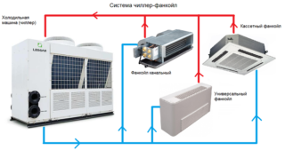 - Capacité de ventilation - le système de climatisation est conçu en fonction de la tâche à accomplir. Un climatiseur central est connecté au système de ventilo-convecteur refroidisseur, qui fournit de l'air frais.