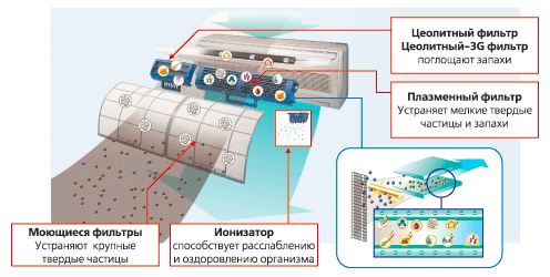 - Les climatiseurs équipés de filtres de haute qualité purifient l'air de la poussière, du pollen, des spores fongiques, des bactéries et des odeurs désagréables.