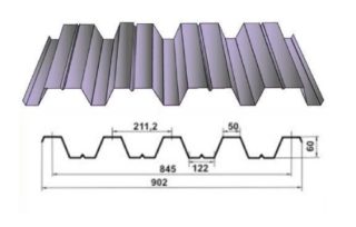 La tôle profilée pour le chevauchement doit fournir la rigidité nécessaire avec une hauteur d'ondulation d'une épaisseur de 0,8 à 1,5 mm. De tels paramètres sont possédés, par exemple, par des tôles profilées de nuances N60-N114.