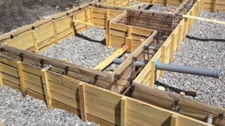 - Au bas du coffrage, des étais en céramique, brique, pierre, béton sont installés.