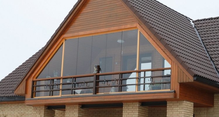 - Fenêtre-balcon - extérieurement, la structure ressemble à un grenier situé dans la pente du toit.Lorsqu'elle est ouverte, la main courante se penche en arrière, élargissant l'espace. Un cadre de fenêtre, qui est fixé en position horizontale, sert d'auvent.