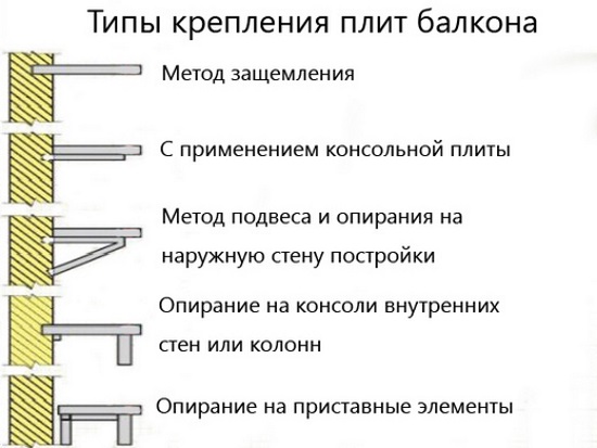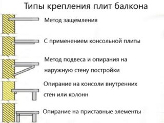 Caractéristiques du montage d'un balcon dans une maison, selon le type:
