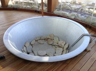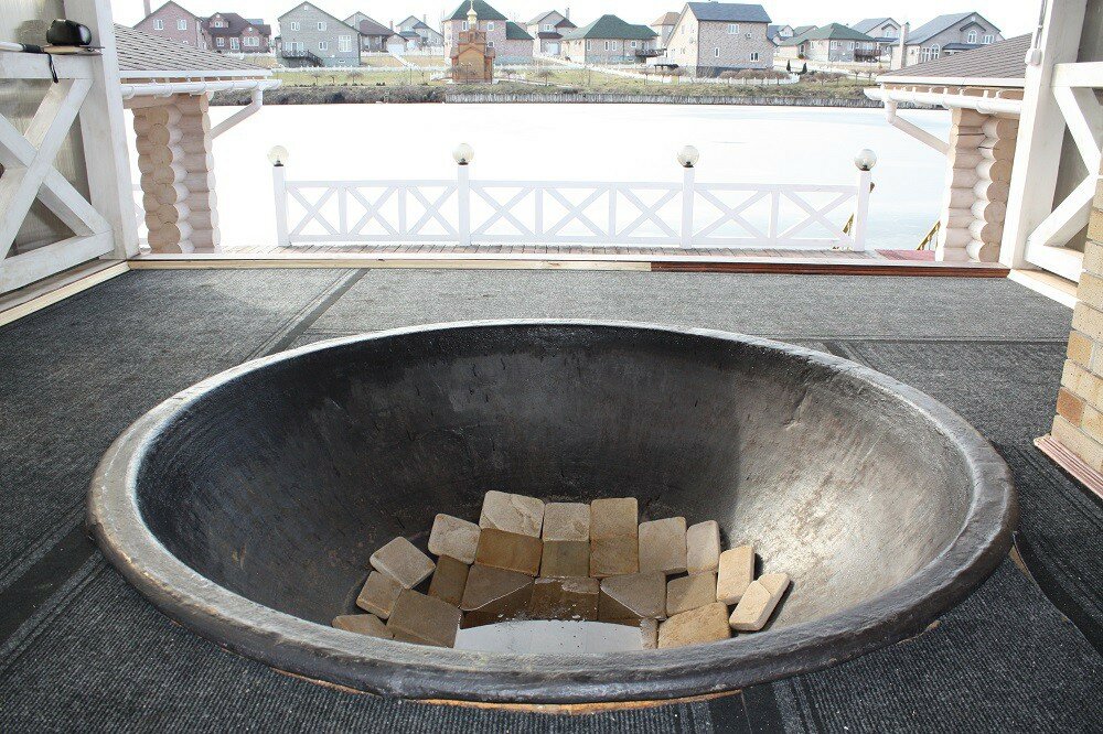 De l'eau plate ou minérale est versée dans le réservoir et un feu est allumé sous le fond. Le liquide est chauffé à + 45 ° C - + 50 ° C, et des pierres plates sont placées sur le fond à l'intérieur pour que le visiteur ne se brûle pas sur le métal chaud. La procédure est effectuée dans un espace ouvert, la tête est au froid, la personne respire de l'air frais et le corps se réchauffe.
