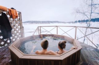 Le spa peut être installé en permanence sur des supports, des bûches ou suspendu au-dessus d'un feu sur un trépied en bois.