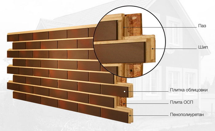 En tant qu'isolant, on utilise de la mousse de polyuréthane, du polystyrène expansé, de la mousse de polystyrène extrudé. Le revêtement de finition est souvent réalisé avec du clinker sous une brique, ou du grès cérame, des éclats de marbre avec pigmentation sont placés. La durée de vie du revêtement peut aller jusqu'à 25 ans. Les panneaux sont montés à tout moment de l'année avec de la colle polyuréthane.