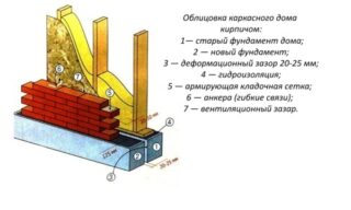 Une couche de briques en céramique est faite dans 1 pierre ou placée dans une demi-brique. La garniture inférieure est isolée de l'humidité; pour cela, un écoulement galvanisé est utilisé. La maçonnerie est réalisée du sous-sol en hauteur jusqu'au toit. La couche de finition est liée à la charpente de la maison au moyen d'un renfort intégré à travers le mur. Chaque quatrième rangée de la maçonnerie est renforcée par des tiges d'acier longitudinales d'un diamètre de 8 mm.